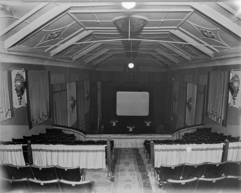 Conversion to a theatre occurred at a time when moving pictures were becoming an extremely popular form of recreation. Novel seating at Everybody’s Theatre allowed two people to sit together without an armrest separating them. The prospectus also boasted that a sliding roof would be inserted to allow open air viewing on warm summer nights. Back when the Queen’s theatre opened in 1911, it had an ornate plastered ceiling where decorations of the interior have been carried out on a lavish scale, the walls having been covered with paintings of New Zealand scenery and the remaining space with plate glass mirrors.