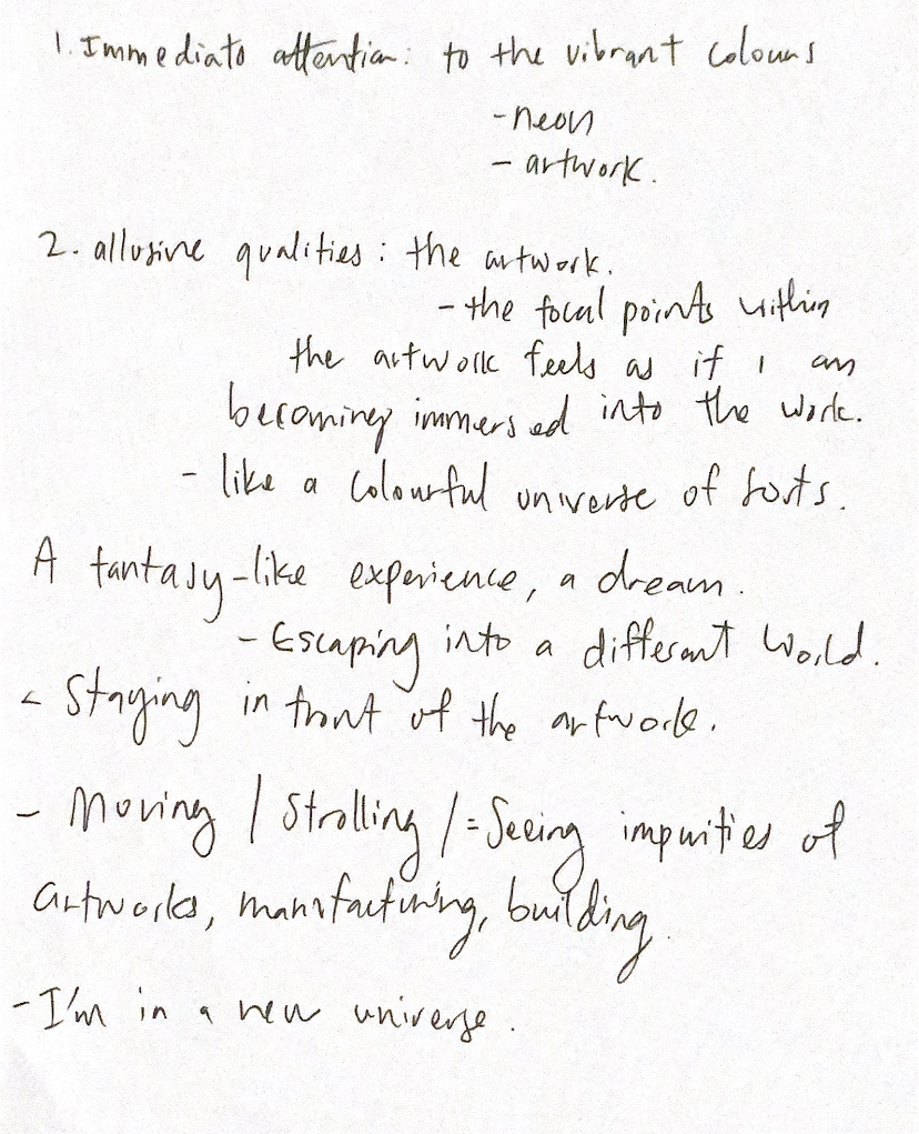 As one followed through my script they jotted down their thoughts and responses in relation to the self reflective questions and conceptual frameworks expressed within my script. This helped me to gather a much more insightful understanding of their experience interpreting my script, where I can utilise these insights to help build a strong story narrative and establish experiential moments within my design intervention.