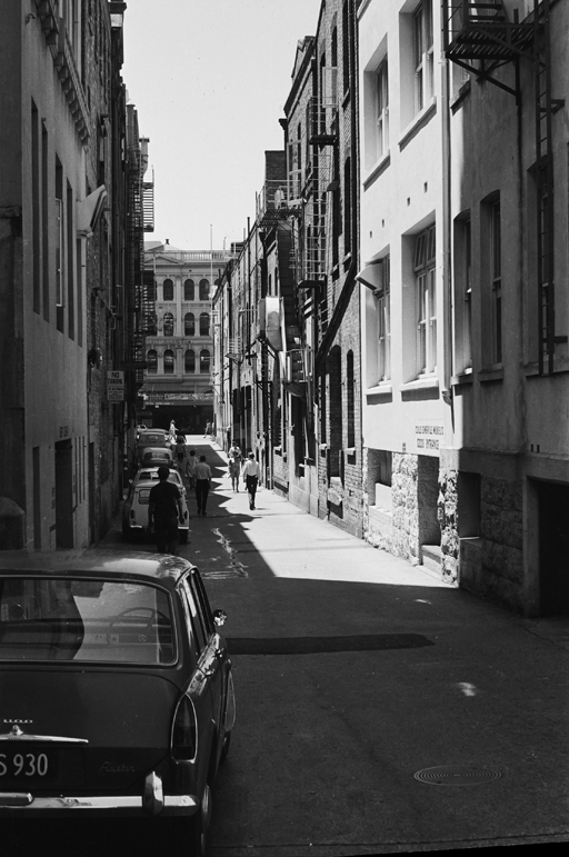 The first land reclamations started in 1859, with nine acres of foreshore between Fore (Fort) Street and Customhouse (Custom) Street being reclaimed in the 1860s. Subsequent reclamation was undertaken to improve harbour facilities at a time when colonial capital was rapidly expanding. The dip in the lane reflects the settlement of the reclamation material.