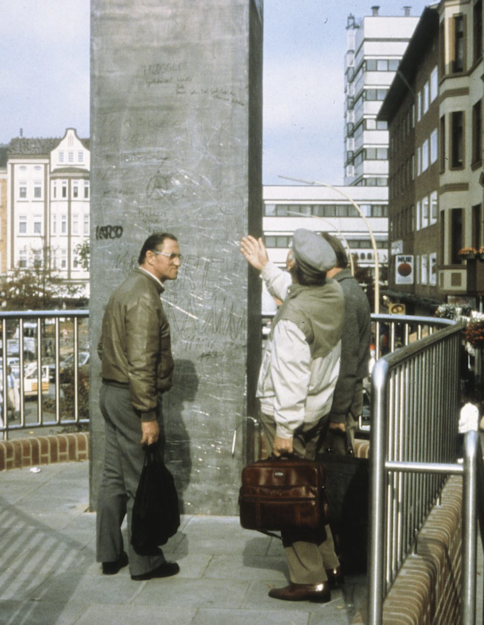 Residents were invited with a text, translated in seven languages, to ratify a public statement about fascism by engraving their names with the metal pencil provided directly onto the surface of the monument. As more and more names cover this 12 metre-high lead column, it will gradually be lowered into the ground. One day it will have disappeared completely and the site of the Harburg monument against fascism will be empty.