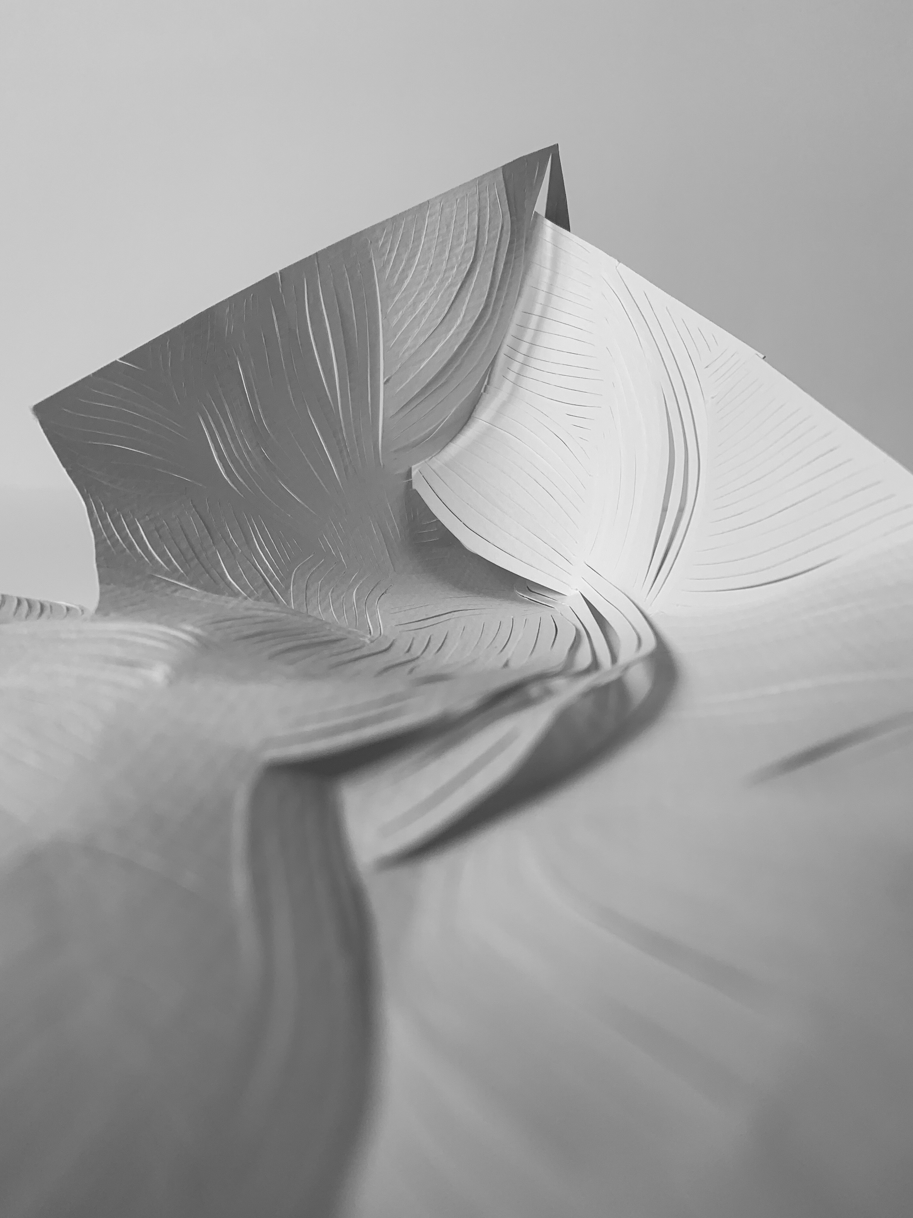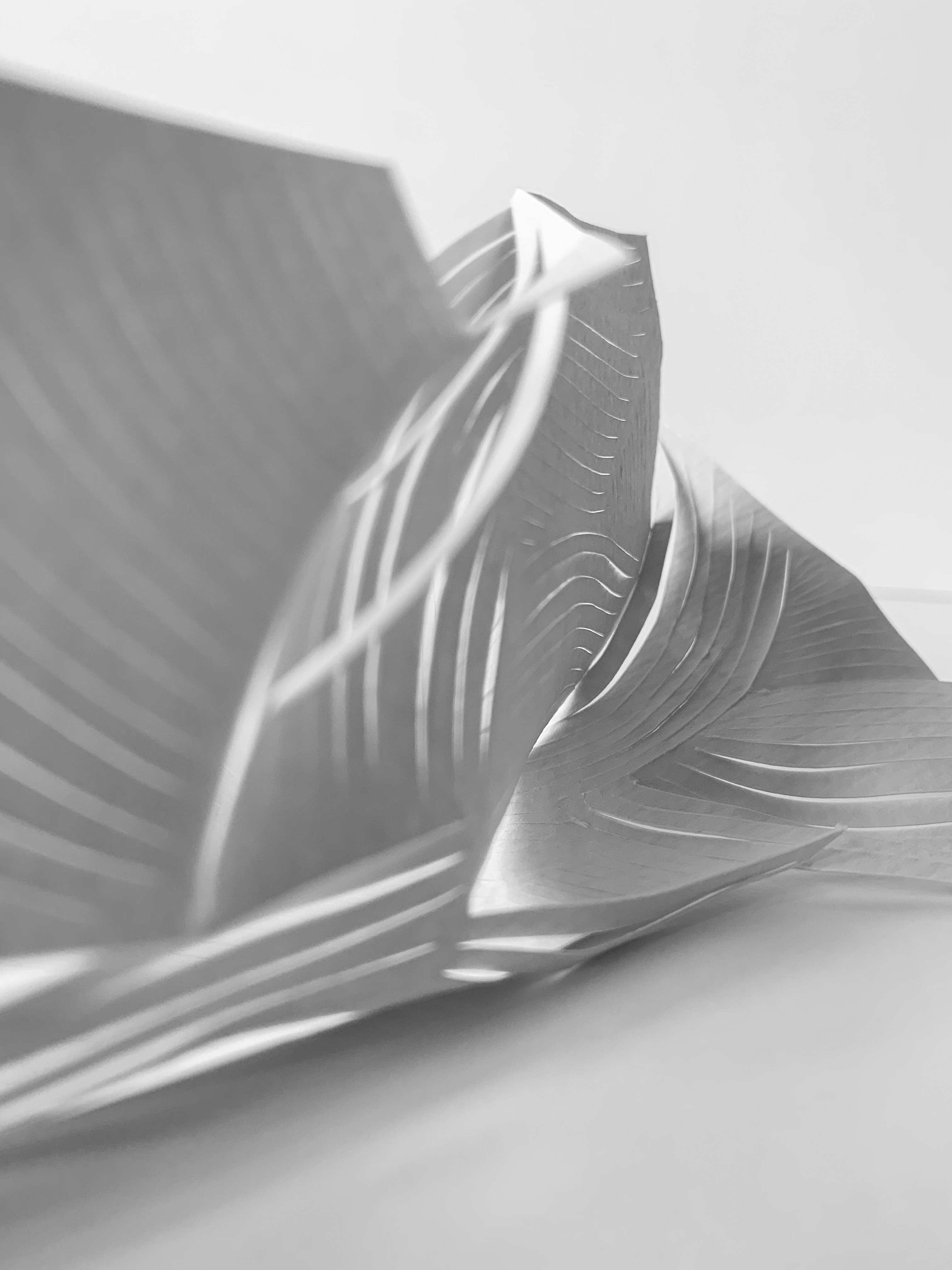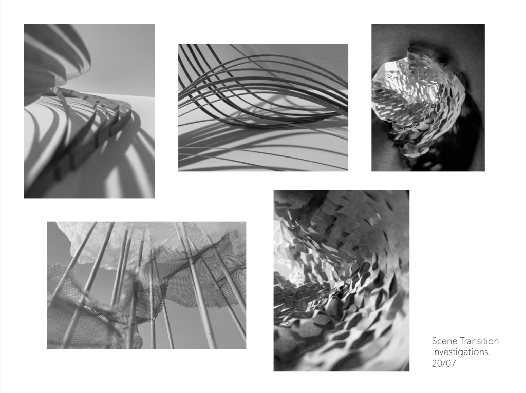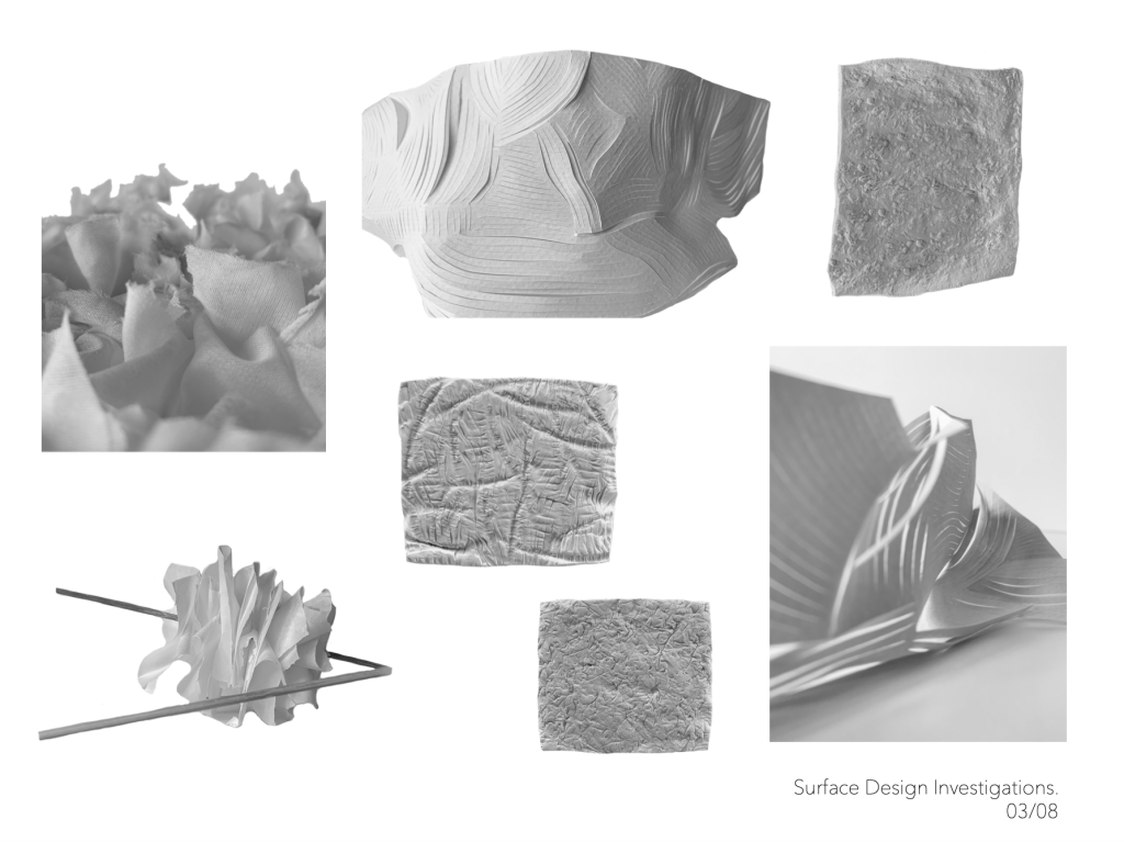 In conjunction to these scene transition models did I also reflect over my material narratives and surface designs. These selective models established surface designs through model making, as a means of investigating material and immaterial narratives relative to my existing conceptual frameworks. The photographs, models and surfaces I chose to incorporate into my design proposal presentation are best reflective at conveying my driving design concepts and initiate potential for further investigation within my project. These design experimentation sparked the captivation of new intriguement within my project.
