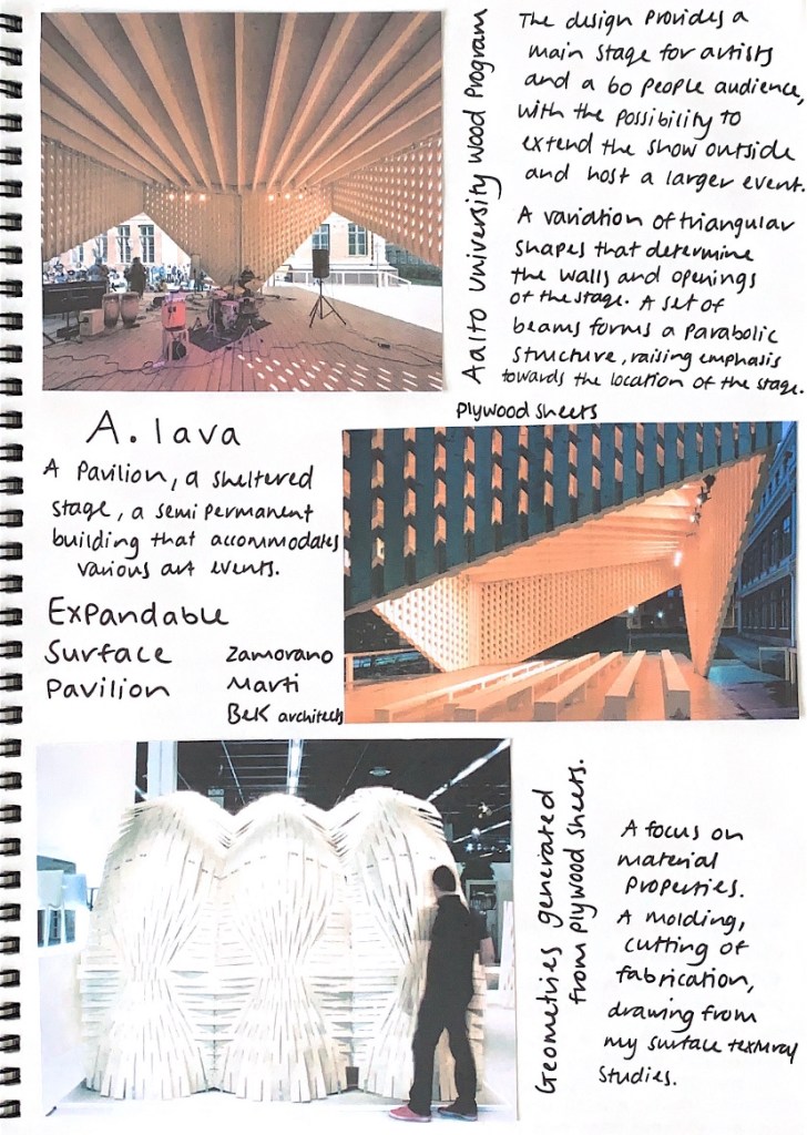 Firstly do I want to design for an array of ‘performances’ or one specific performance or performance type, live band, solo singer, busker, dance, street performance? Is it a casual encounter for people to watch and observe, a formal set up with embedded seating, or room for people to participate too. How do I wish to interpret this set/stage performance that everyday people can interact with? Where it brings people together to experience this performative, in live enactments. Is it an intimate, more private moment, or is it something to be shared?