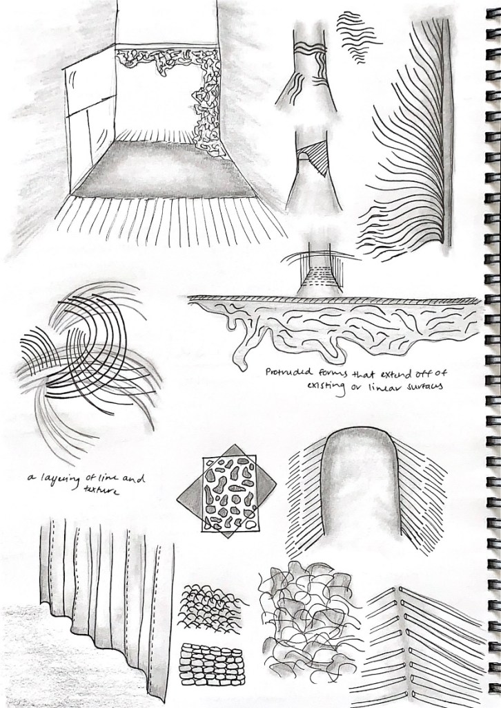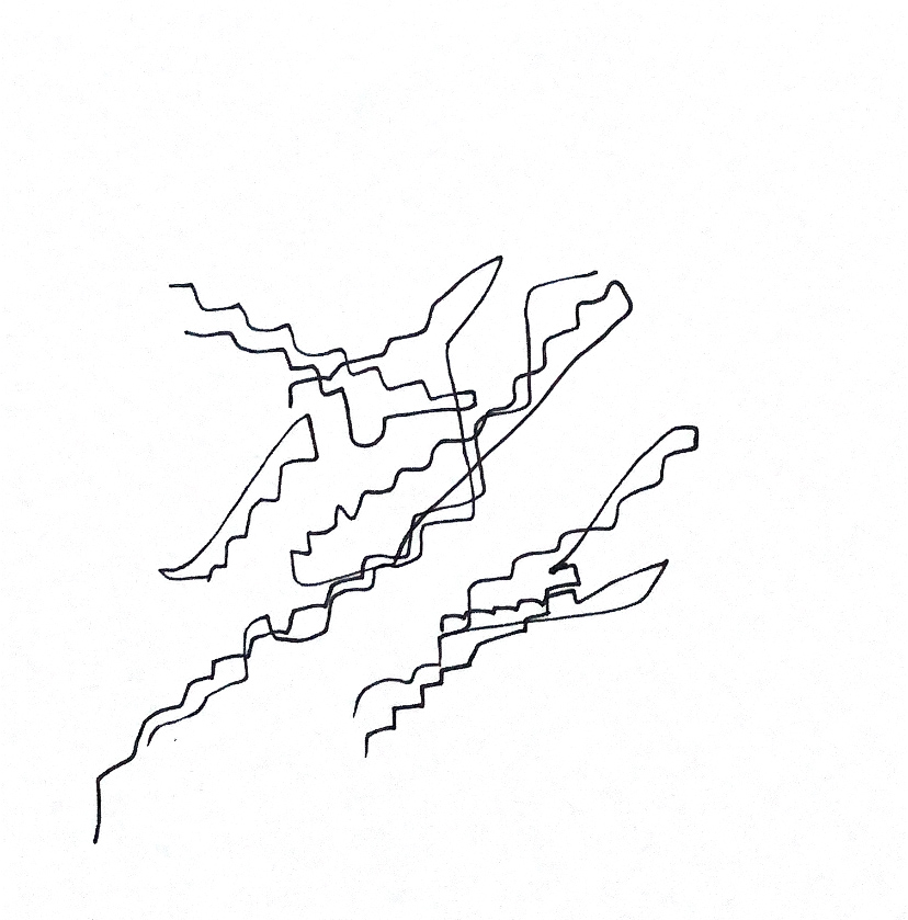 Along with exploring sounds, I proceeded to reflect back over my generative movement scripts that programmed ones inhabitation, actions and therefore experiences within Fort Lane. How did the words direct me through the site, in a way that was written out as a guidance but had the opportunity for interpretation and imagination. Through line drawing was I able to visually articulate these experiences.