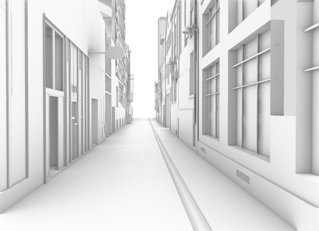 This plan consisted of the traditional dance elements to be implemented down the track into the design, along with the structural changes and additions I wish to make into Imperial Lane and Fort Lane. Whilst constructing the digital model of these spaces will I be able to refer back to these documents in order to have clarity towards what parts need manufacturing or consideration. The main two spaces that I am working into consist of Imperial Lane and the junction from Imperial Lane out into the Fort Lane site. In order to begin constructing and formulating my design into these exisiting spaces I started with a base model of each site.