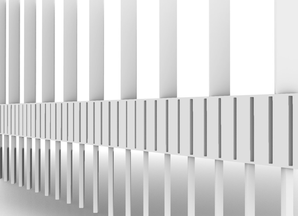 However we then discussed the position of this dividing wall where she proposed the idea of widening or narrowing the hall by offsetting the space. Where instead of the wall retaining a straight line, what possibility is there to offset the wall so that its on a steep angle. This would mean that when people enter from Queen Street, there is more distance between the two wall faces (fixed external wall and my dividing wall) to allow for more of a glimpse into the dance space. As they progress down the narrower, tighter end they have already been alerted to whats going on behind the screen so will be more inclined, intrigued to peer under or above at the openings. Instead it is an oblique line to introduce for a potential waiting area before dance classes take place. Along with this we also discussed how the expanse of the wall allows for sectional gaps in between where the wall surface detail is installed as panels that become a rhythmic introduction that invites a glimpse into the space. Shown below is the development of these new ideas and how they could potentially interplay in my design.