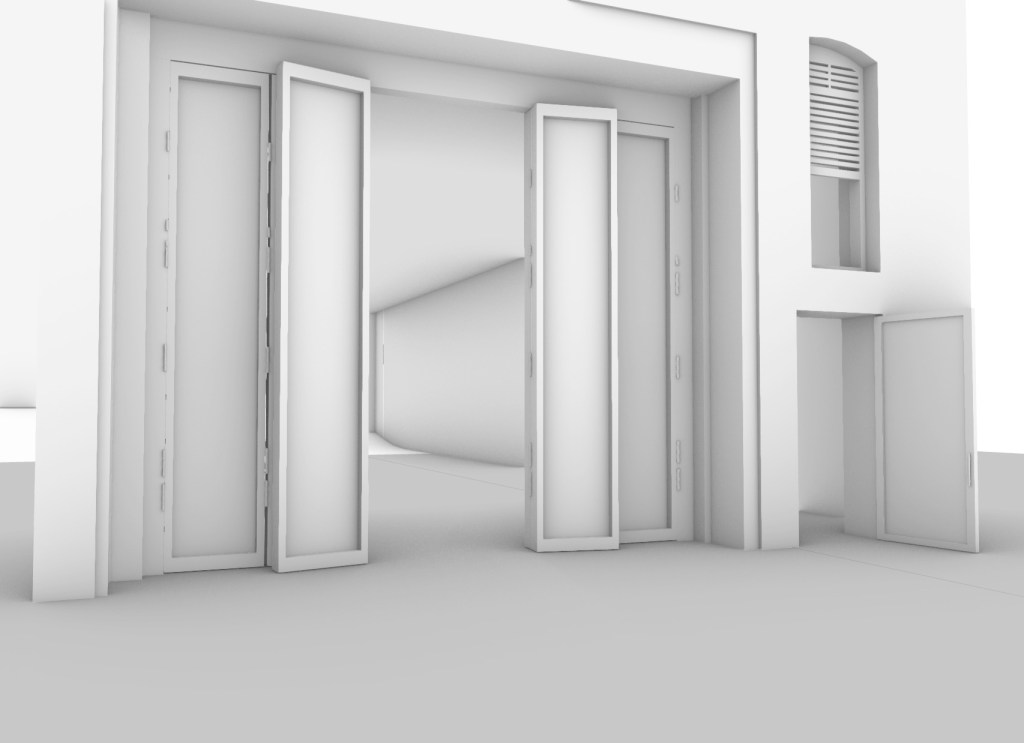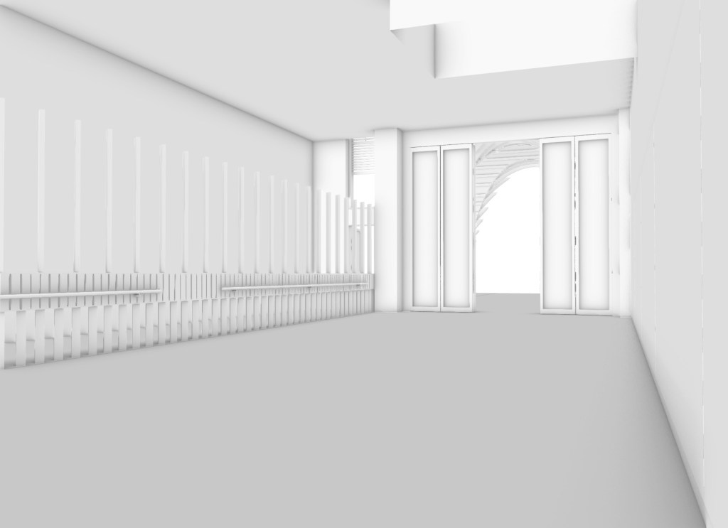 Digital renders of my constructed design into the exisiting building, along with its design features.