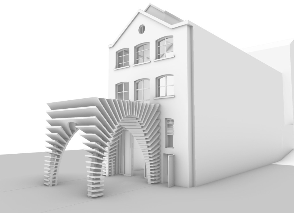 Located within the interiors of Imperial Lane, an unsuspected dance studio awaits as a space supplied for choreographers to expose the naturally performative enactments of dance practices. A carefully crafted yet striking pavilion façade situates itself between where the interiors intersect into Fort Lane, allowing for these traditional conventions of a dance studio to be open to the laneway, the passer by, the public. By drawing insight to reveal what occurs behind the curtain, the pre performance, the rehearsal space, Dancing Into the Building aims to invigorate the city by providing a platform for expressive, dance practices to shape, redefine and reconsider urban environments in a completely new way. This design introduces an unfamiliar form of programming into the city, one that intends to serve its inhabitants in an unaccustomed way, eliciting a transposing in habitual worlds where they become captivated by the unexpected gestures composed within these transitional spaces.