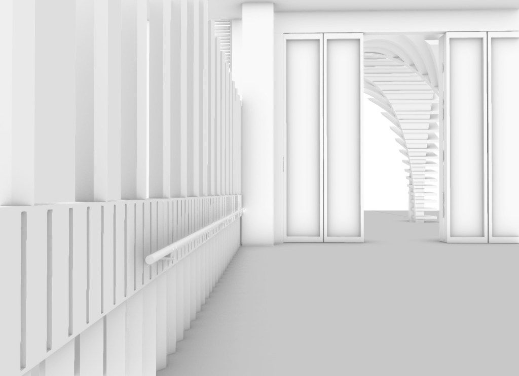 As a continuation for developing my digital models, once I had conducted all the structural adjustments was I able to start building the finer details for my proposed design: the dividing thoroughfare wall, mirrored wall, entry way into the studio, storage space, floor surfaces, and most importantly the pavilion structure.