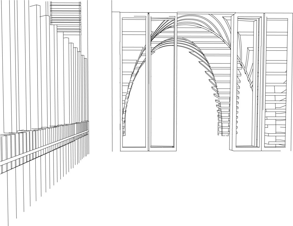 Each line drawing aims to take one on a journey through my proposed design into the Fort Lane Precinct. A design narrative that seeks to transition one throughout the space with a series of marks, lines to guide one through, along and within.