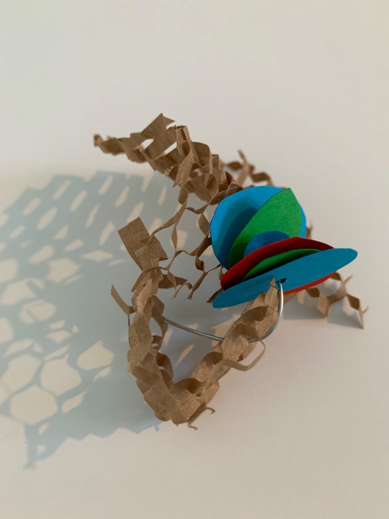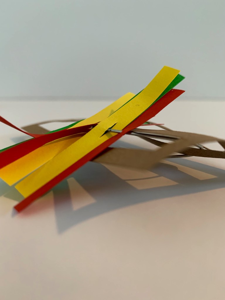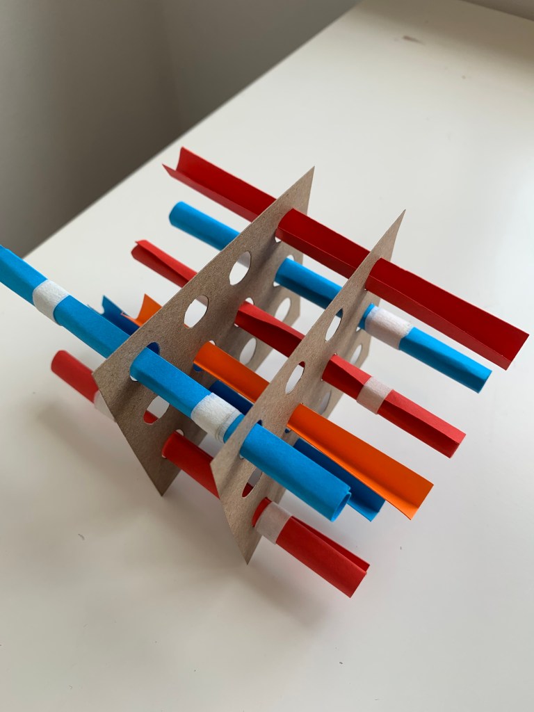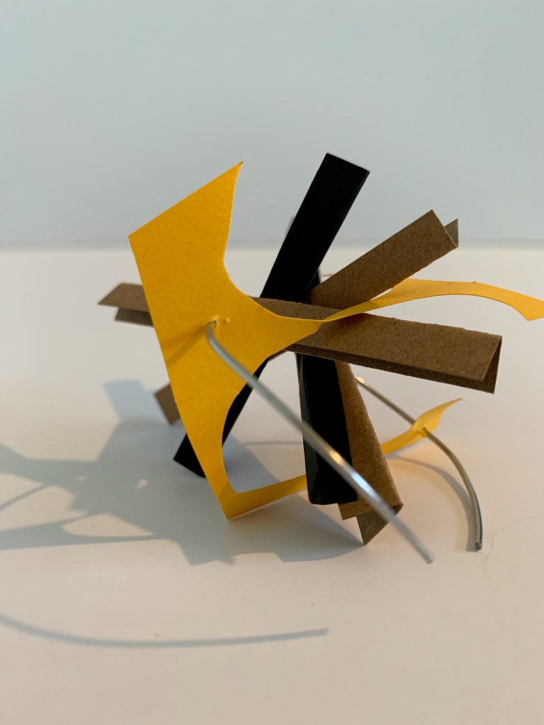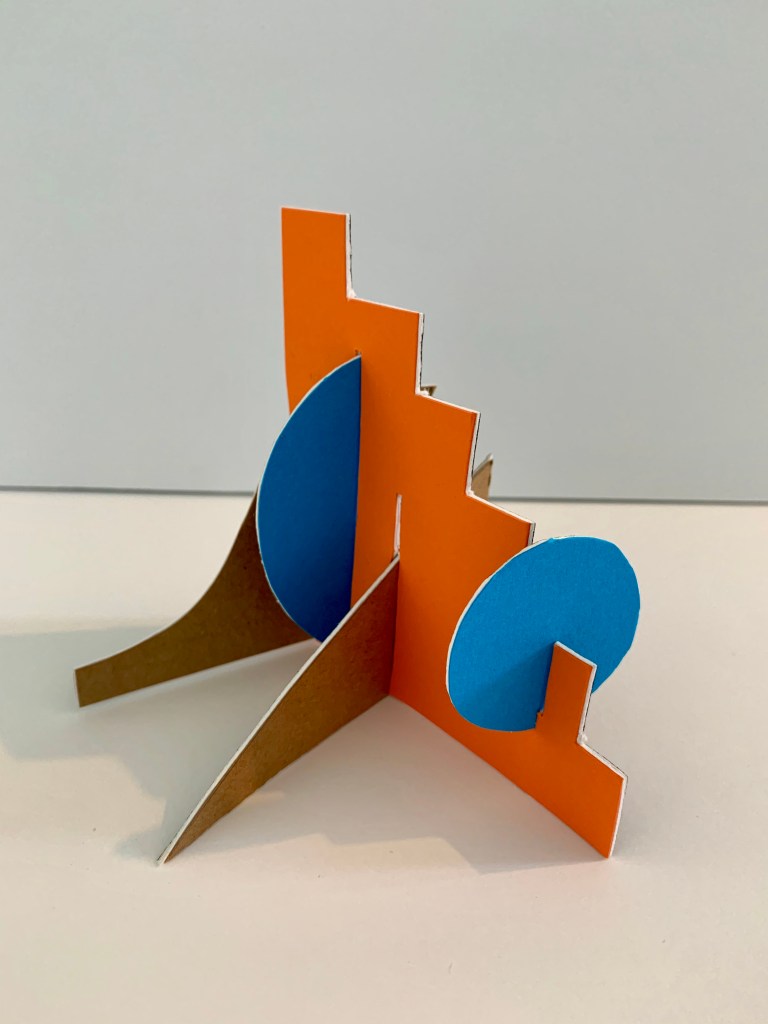 Utilising all of the research and artist model analysis we conducted throughout the week, this design workshop explores our artist model through a practice of making. For this exercise we have been asked to make a series of models that analyse aspects of our chosen artist model, focusing on materiality by using materials that reflect our analysis of the creatives work. This may be that you use the type of materials the artist models use or something that resembles what they use. Featured below are my three intersecting colour models.