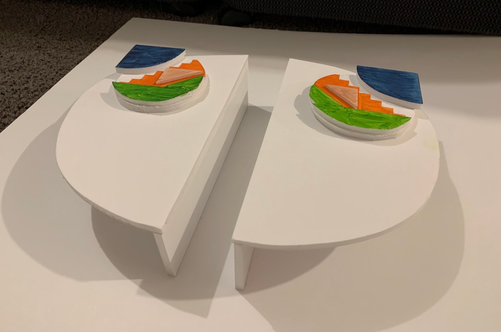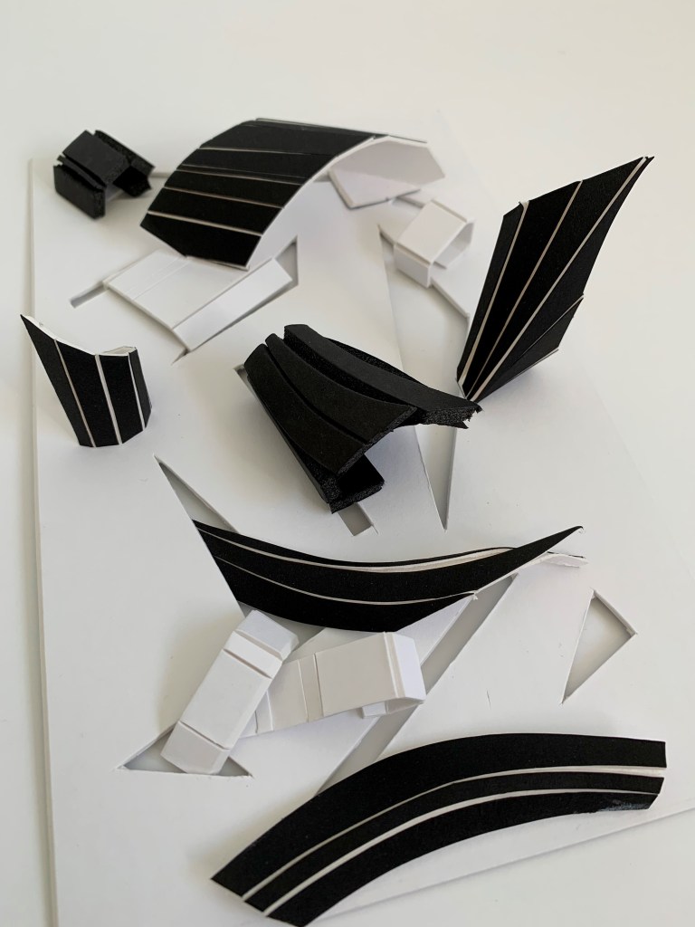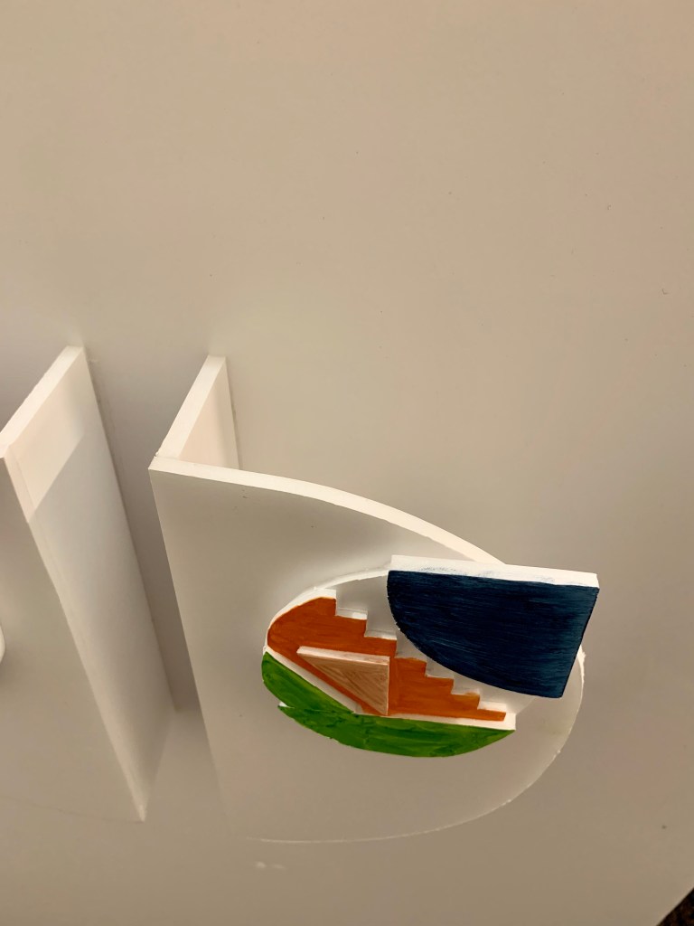 Throughout the creation of all three models I stuck with the same prominent colours present within my artist models work, in order to establish its direct influence and connection. Each model explores different aspects such as colour, light, shadow, surface textures and shapely volumes. Getting to experiment and play around with the key aesthetic features present within my artist models work, allows me to consider which of these features I wish to further explore and possibly implement within my own design intervention, in order to start building on potential creative and aesthetic components.