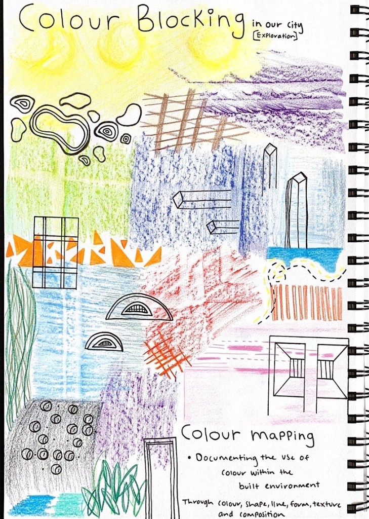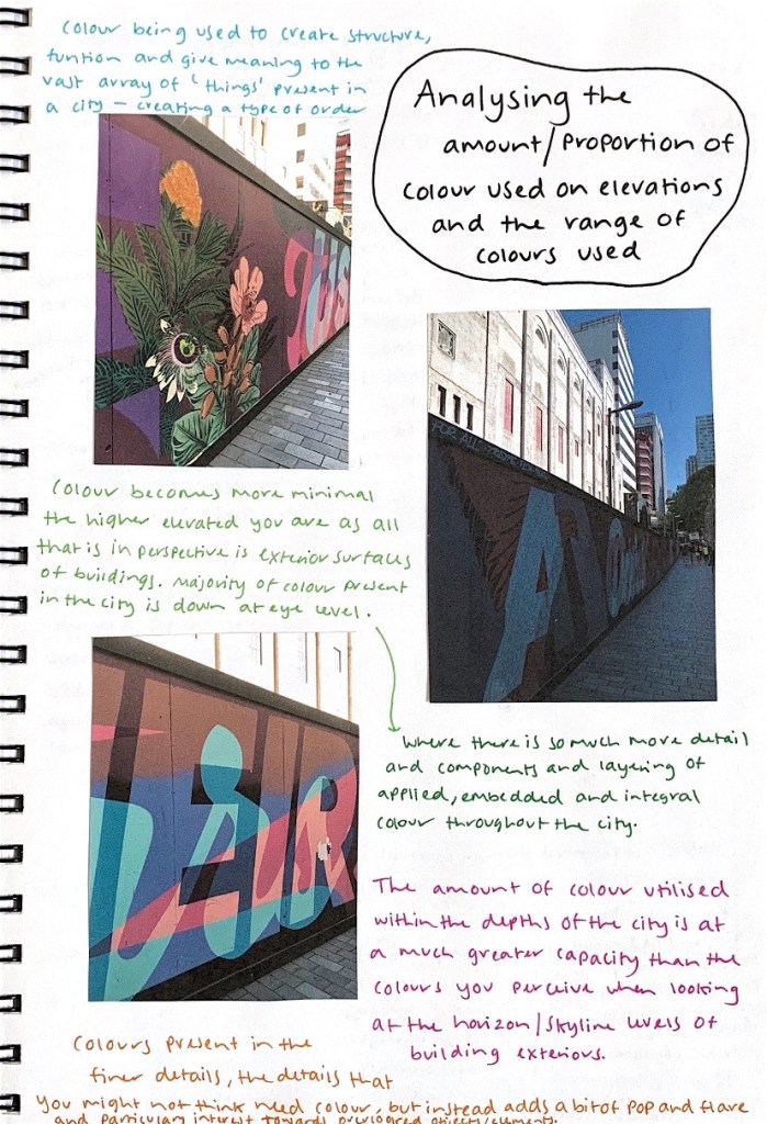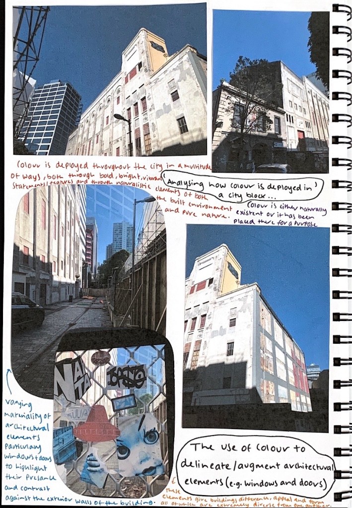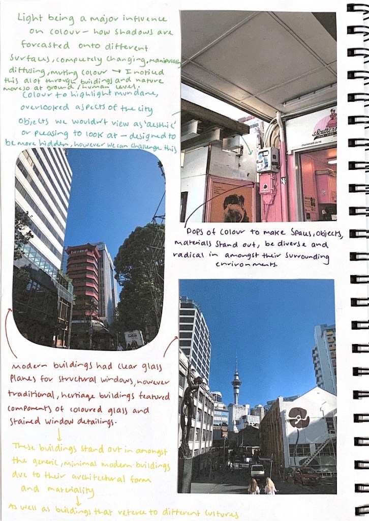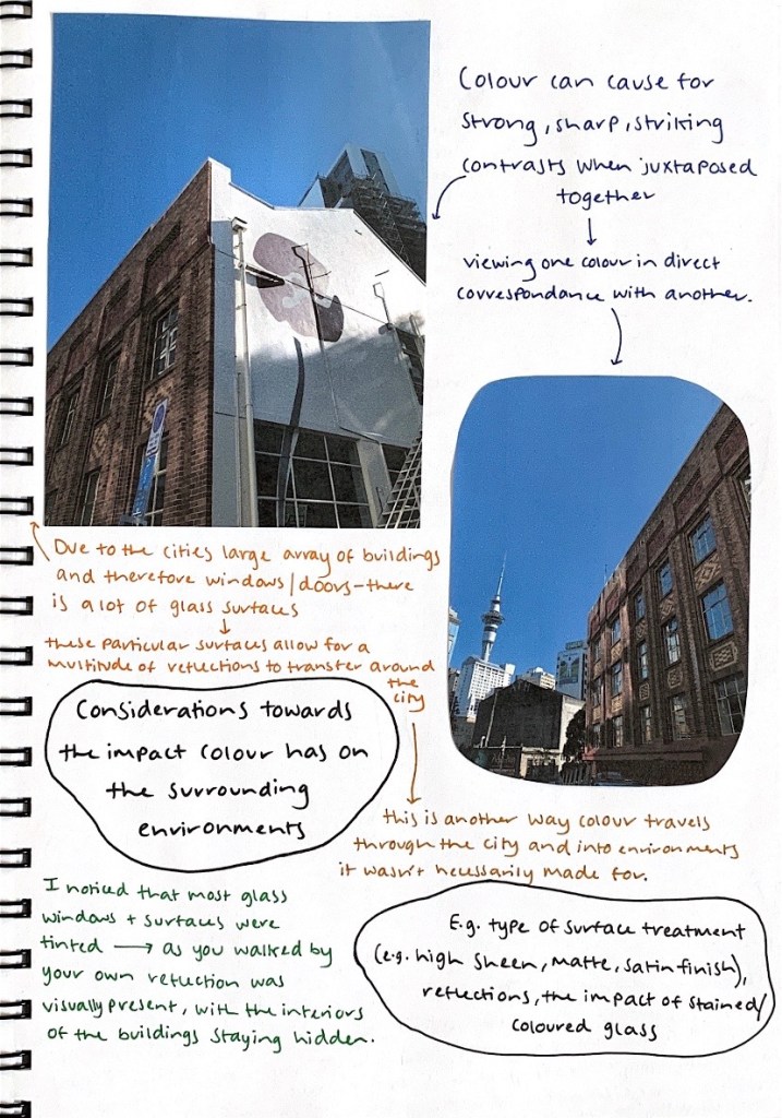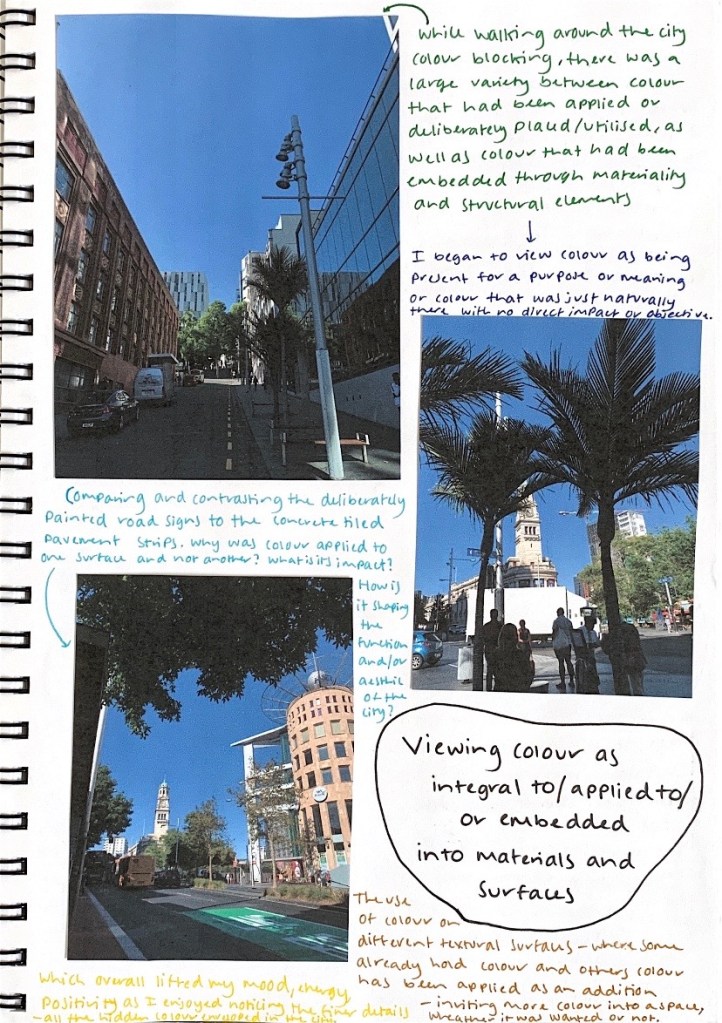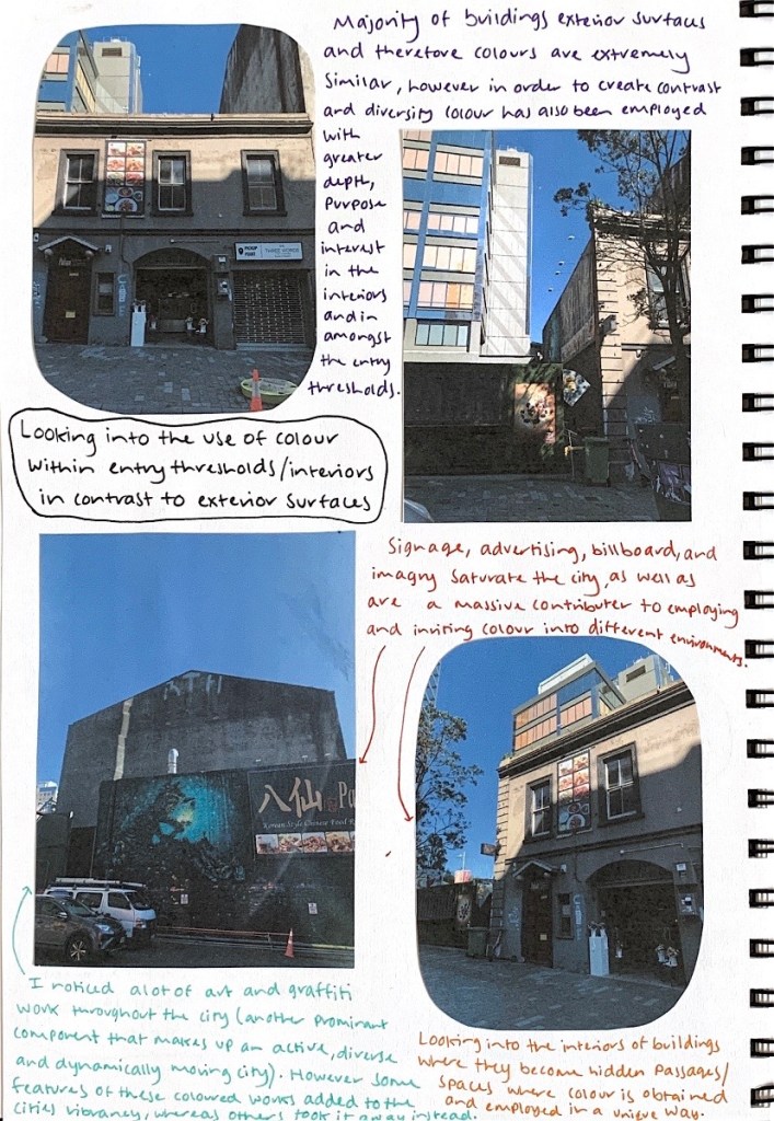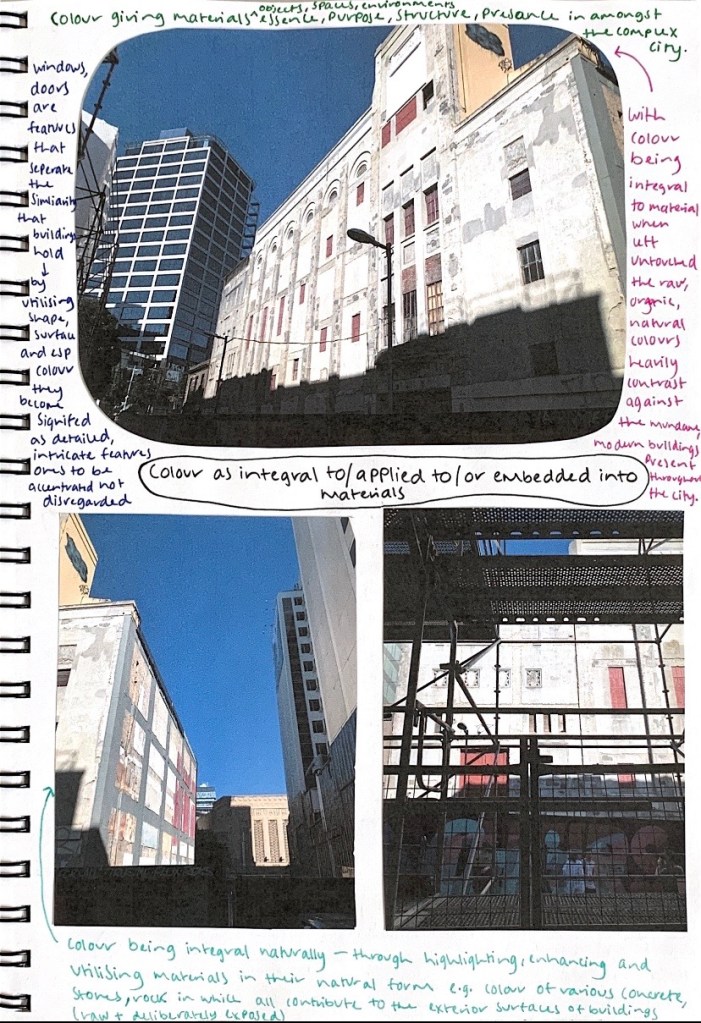 Following along from our walk in the city, I reflected back on key observations that I noticed in relation to how colour is deployed, utilised and employed within the city and the direct impacts it has on materiality, surface treatments and its overall surrounding environments.