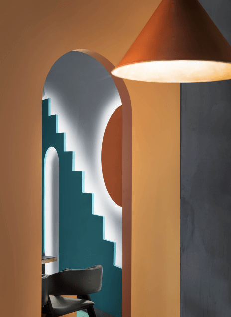 What type of surface treatments are used in the work? Do they use matte, satin, or gloss paints or material finishes or all of them together? Why might they do this and what is the effect of doing this? – Within each of Renesa’s creative works they employ a variety of surface treatments and materiality finishes, all which compliment and harmonise with their compositional layout and colour choices. Majority of the flooring surfaces in their designs are constructed of exposed concrete or a detailed tile finish. For their wall surfaces this widely varies and is dependant on the overall structural layout as well as the kind of spatial experience they are wishing to create. They utilise a combination of materiality and surface finishes such as exposed concrete, painted plaster, wallpaper, tile, wood and brick (only a selection). Renesa uses many different finishes ranging from matte surfaces to more glossy, shiny surfaces. Their design decisions to utilise and integrate a diverse collection of materials and surface finishes into their works allows for the creation of a compelling space that upholds depth and meaning, intriguing the viewer at the hues of the interior that follows inside.