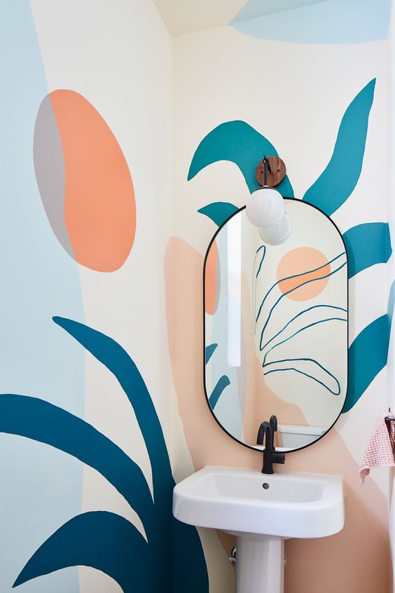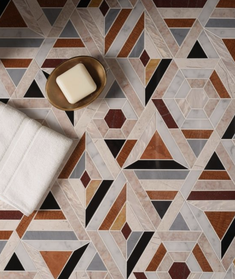Materiality + Surfaces – Painted plaster, wallpaper, tile, metal, marble, glass.