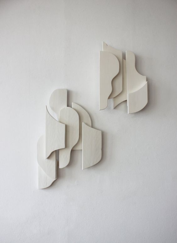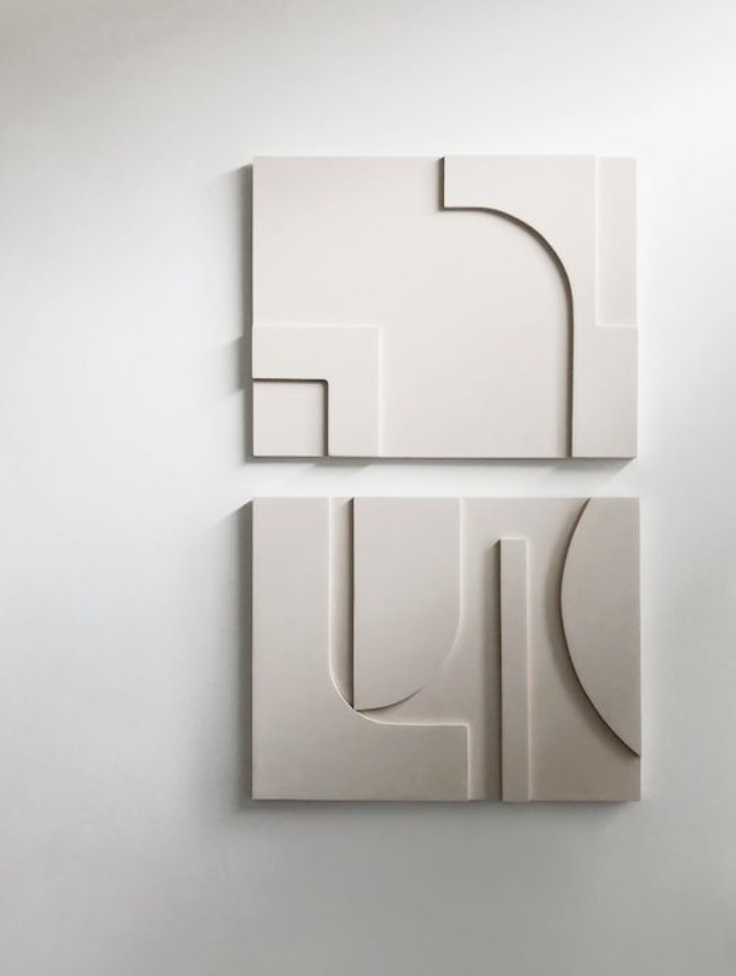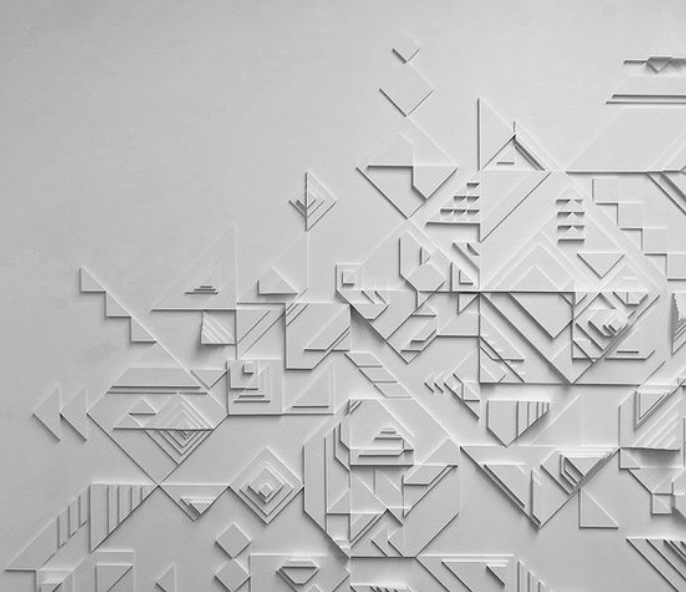 My initial idea exploration surrounded utilising the surface treatment of an embossed wall, a textural wall composed of various layered shapes and geometric forms. Where different shape forms are established through a detailed, three dimensional wall pattern. Considering how I could create these partitioned, textural volumes that would almost encroach within the space, how this kind of treatment would emphasise their form, their presence within the space. Featured below are some design inspiration images of the different ways in which I could potentially employ this kind of surface treatment.