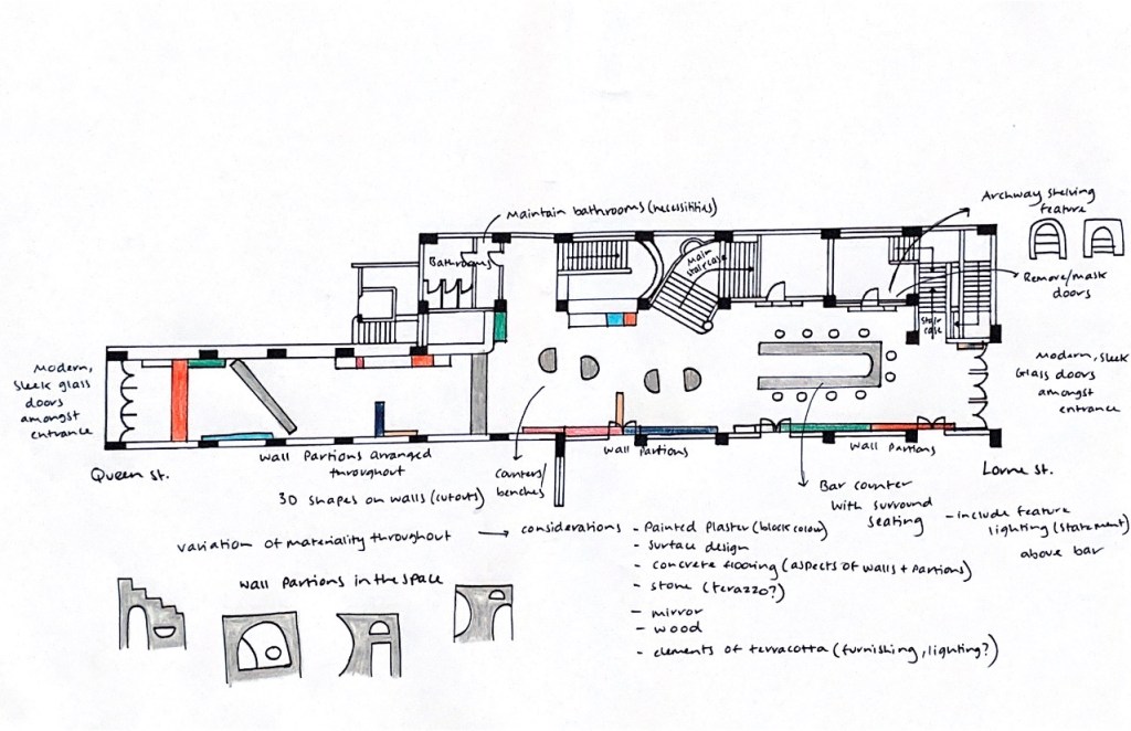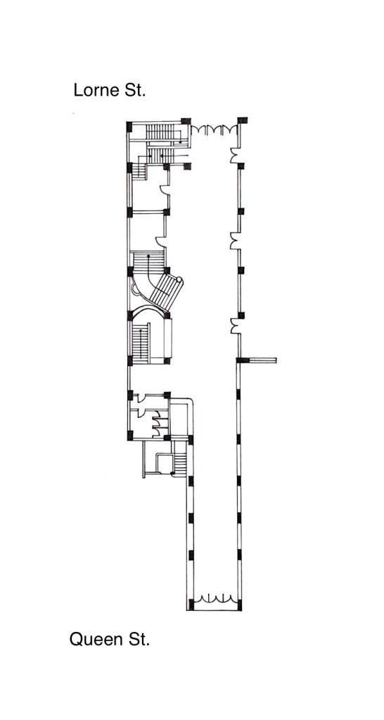 Getting to visit the St James Theatre and get toured throughout the entirety of the interiors seeing, observing and analysing its original details, features and structural layout is extremely beneficial to developing our understanding of the site as well as helping us to visual potential design ideas and concepts for our intervention. From visiting and walking around the site, I now have a much better perception of scale within the space and its overall layout. After our site visit and seeing the space, I still really like the idea of the site being a passageway or walkway connecting between Queen Street and Lorne Street.