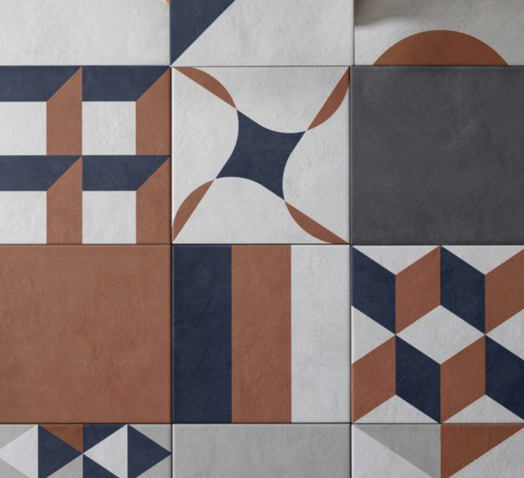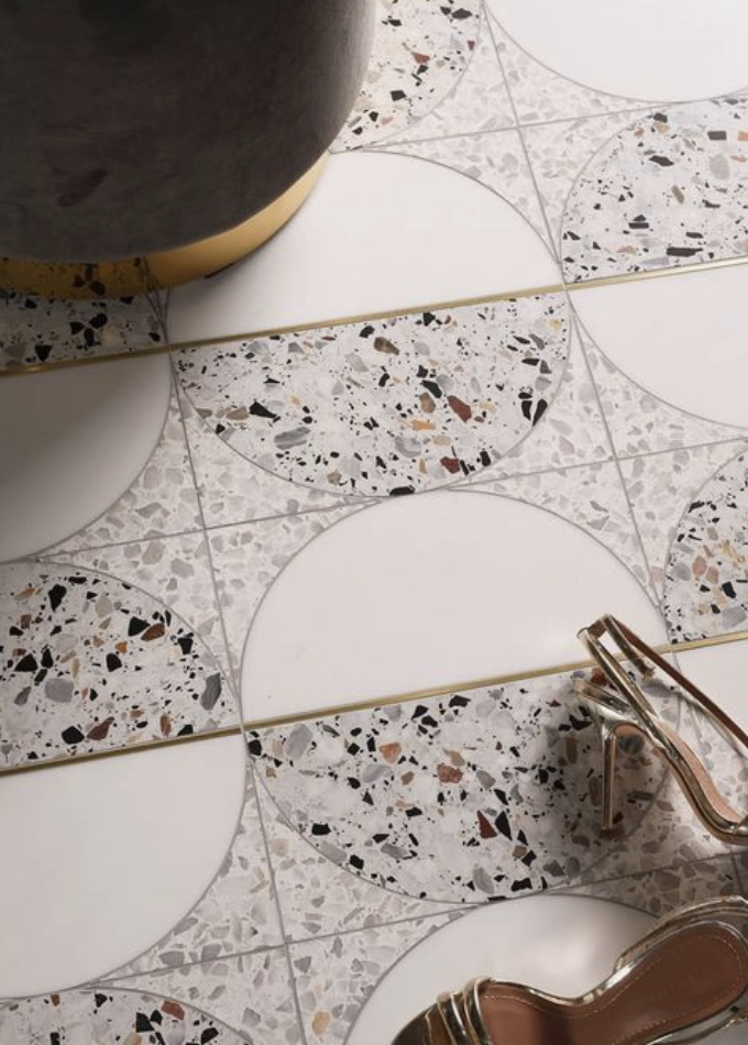 Another surface treatment approach I considered implementing within the space was the utilisation of a statement floor tile. A tile that consists of an intricate and detailed pattern that would extend throughout the entirety of the foyer space, in order to create a continuous flow throughout the space and generate maximum impact. For the experimentation of developing a surface design and application for the St James foyer space I decided to continue exploring how this tile design could be implemented within the space. Featured below are some inspiration images of different patterns and design ideations of how to construct a bold, statement tile, along with the ways in which I could potentially employ this kind of surface treatment and the materiality I could use.