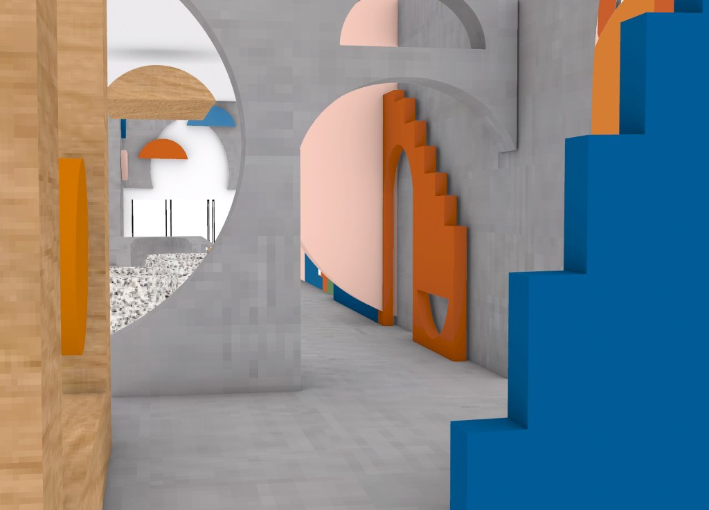 Purpose – Taking cues from the original deconstructive architecture, Renesa’s aim was to create a variable spatial experience filled with volumetric galleries and partitioned masses. They have created a space where the visitor is transported to an uncertain realm characterised by successive geometric shapes on different scales and colours.